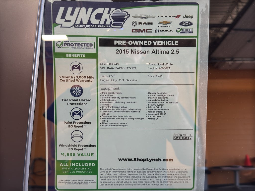 Discover reliable performance and refined comfort with this 2015 Nissan Altima 2.5, a fuel-efficient midsize sedan located in Burlington, WI. Powered by a smooth 4-cylinder 2.5L gasoline engine mated to responsive front-wheel drive, this Nissan Altima delivers confident highway cruising and balanced city maneuverability. The well-designed interior provides spacious seating for five, generous legroom, and thoughtful storage solutions for daily commutes or weekend getaways.