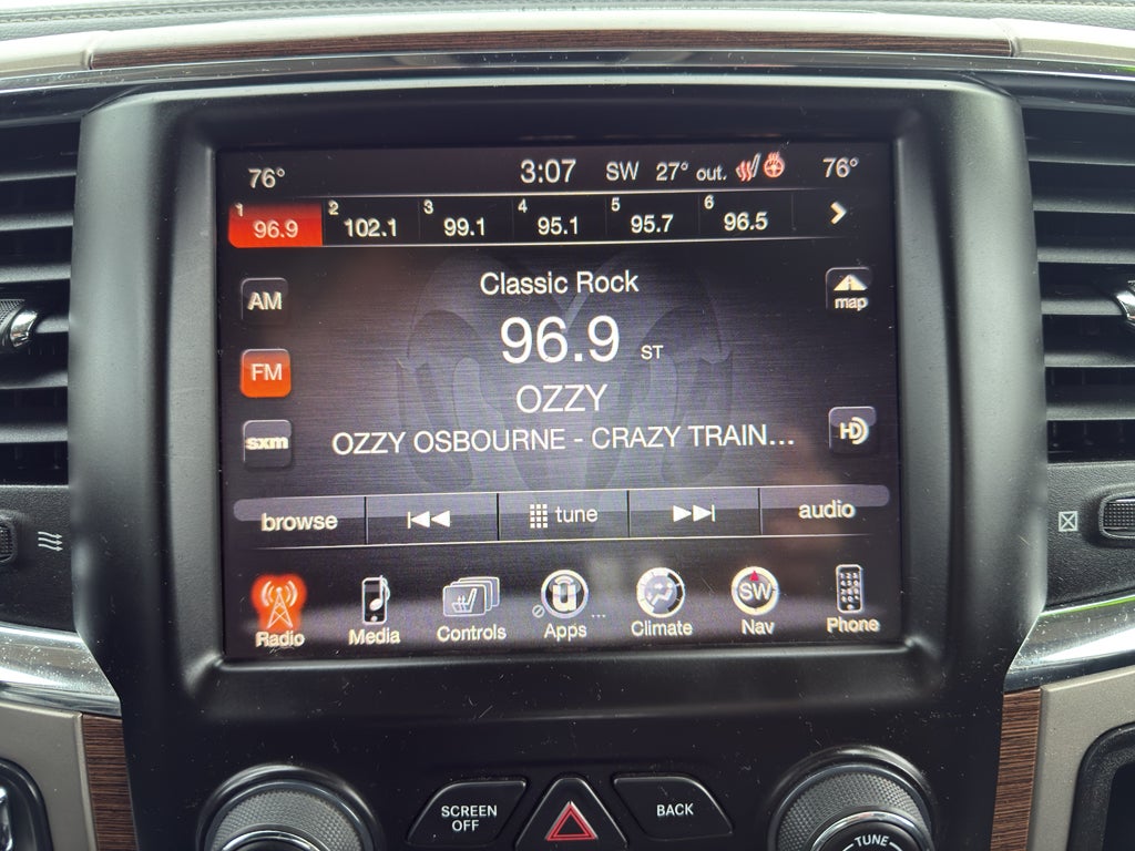 See what's behind you with the back up camera on it. The rear parking assist technology on this unit will put you at ease when reversing. The system alerts you as you get closer to an obstruction. The Ram 1500 is equipped with the latest generation of XM/Sirius Radio. The leather seats in the vehicle are a must for buyers looking for comfort, durability, and style. Never get into a cold vehicle again with the remote start feature on it. The installed navigation system will keep you on the right path. This vehicle is pure luxury with a heated steering wheel. It features a hands-free Bluetooth® phone system. This Ram 1500 keeps you comfortable with Auto Climate. Maintaining a stable interior temperature in this Ram 1500 is easy with the climate control system. With the keyless entry system on the vehicle you can pop the trunk without dropping your bags from the store.