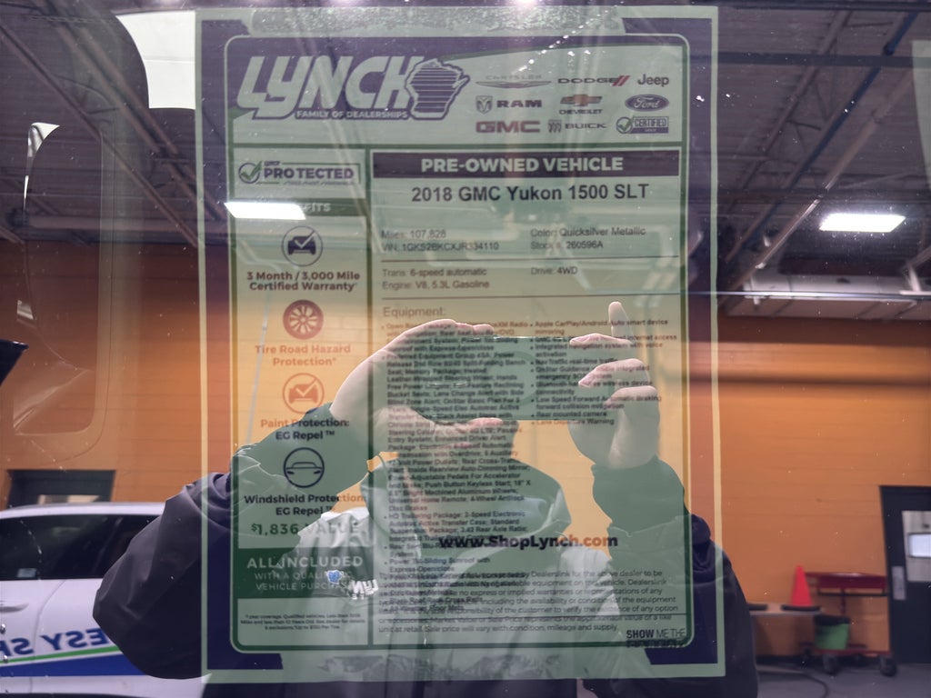 Explore this powerful 2018 GMC Yukon 1500 SLT 4WD with the robust V8 5.3L gasoline engine — a commanding blend of performance, comfort, and technology located in Burlington, WI. This GMC Yukon delivers confident towing capability and smooth highway cruising, paired with a refined interior that seats the whole family in leather-appointed comfort. Automatic climate control keeps passengers comfortable in every season, while the intuitive navigation system guides you on every route with ease.