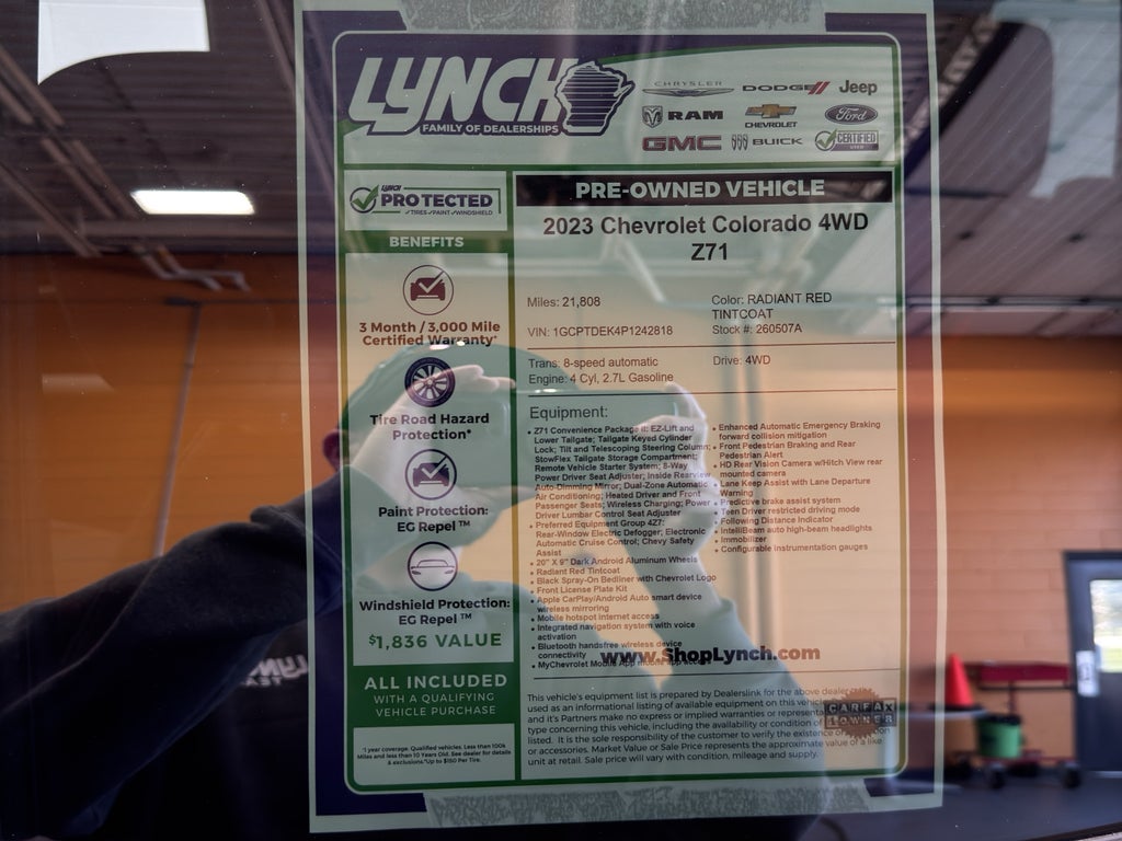 Lane Keep Assist in this 2023 Chevrolet Colorado helps maintain safe driving by gently steering to stay within the lane. This model keeps you comfortable with Auto Climate. Protect this small pickup from unwanted accidents with a cutting edge backup camera system. Good News! This certified CARFAX 1-owner vehicle has only had one owner before you. This vehicle offers Apple CarPlay for seamless connectivity. The vehicle offers Android Auto for seamless smartphone integration. The installed navigation system will keep you on the right path. Bluetooth® technology is built into it, keeping your hands on the steering wheel and your focus on the road. The leather seats in this unit are a must for buyers looking for comfort, durability, and style. This unit's Lane Departure Warning keeps you safe by alerting you when you drift from your lane. When you encounter slick or muddy roads, you can engage the four wheel drive on this model and drive with confidence.