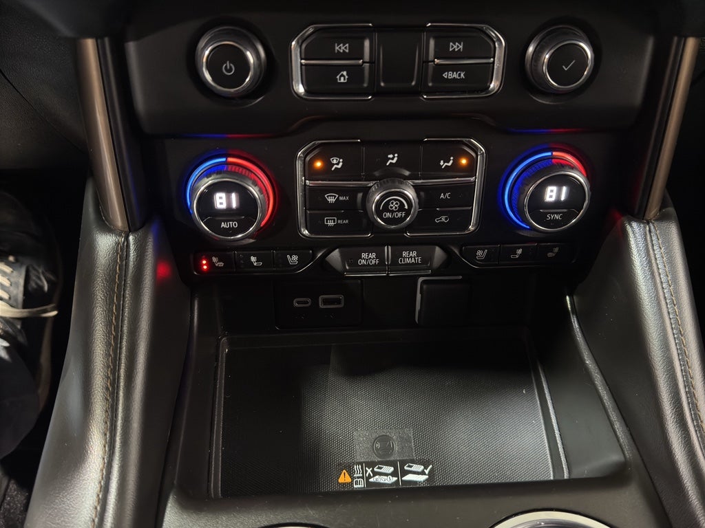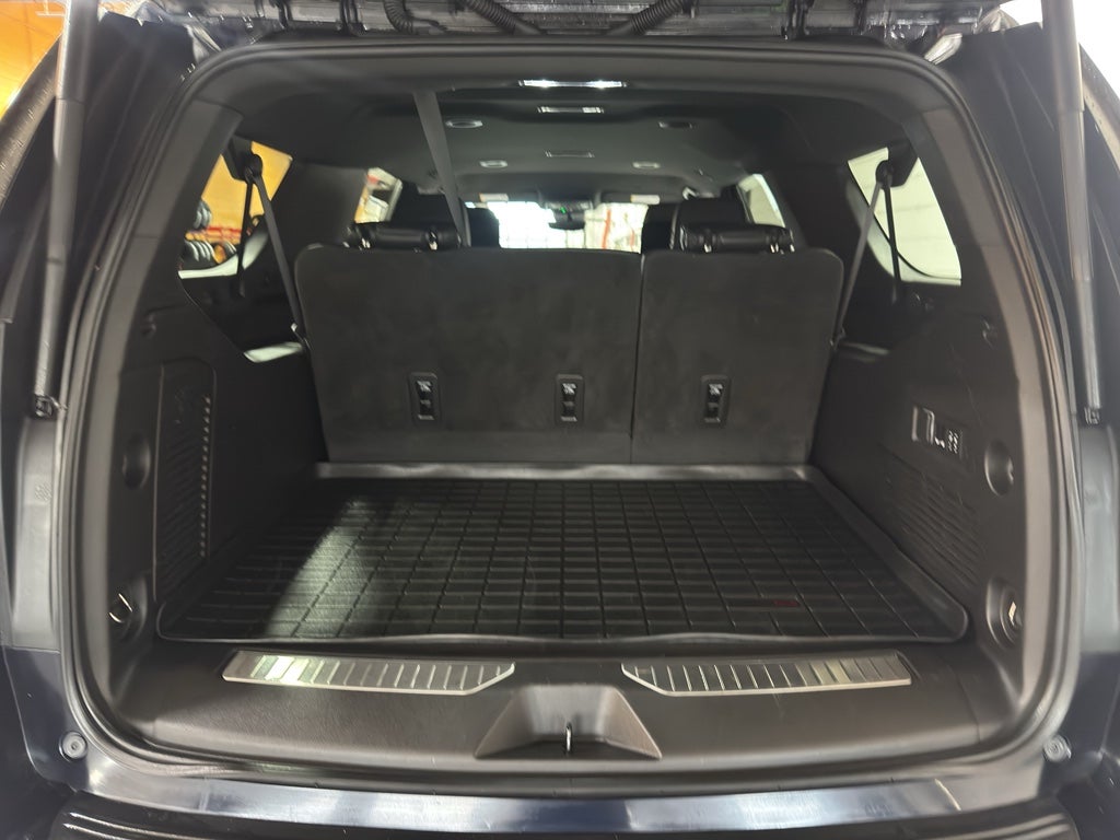 Max Trailering Package. Advanced Trailering Package: Trailer Side Blind Zone Alert; Smart Trailer Integration Indicator; Integrated Trailer Brake Controller; Hitch Guidance with Hitch View. Preferred Equipment Group 3LZ: Bright Front and Rear Door Sill Plates; Memory Settings; Perforated Leather Seating Surfaces; Remote Start; 3rd Row 60/40 Power-Folding Split-Bench; Safety Alert Seat; Chrome Door Handles with Body-Color Strip; Hill Descent Control; 6.2L EcoTec3 V8 Engine; Rear Camera Mirror Washer; Inside Rearview Auo-Dimming Rear Camera Mirror; Heated Steering Wheel; LED Daytime Running Lamps; Rear Cross Traffic Alert; Wheels: 22" X 9" Sterling Silver Premium Painted; Driver and Front Outboard Passenger Airbags; Heated Dri