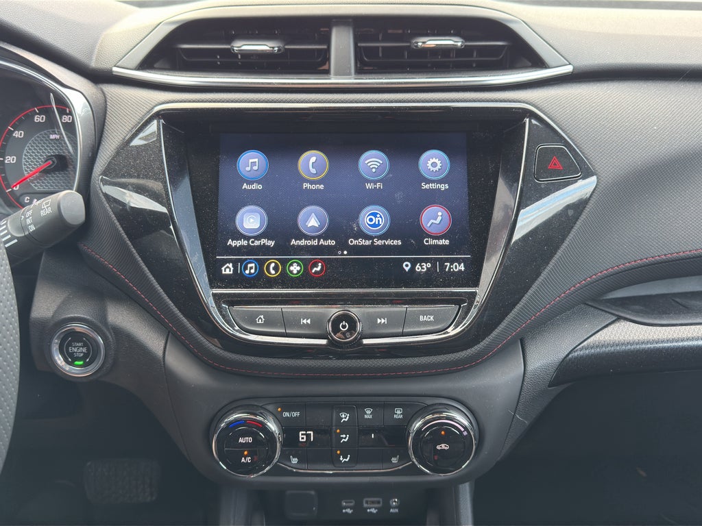 A sporty and stylish compact SUV that stands out with bold design and modern versatility, the TrailBlazer RS delivers a fun driving experience with everyday practicality. Powered by a responsive 1.3L turbocharged 3-cylinder engine producing 155 horsepower paired with a smooth automatic transmission, it offers a solid balance of efficiency and performance for city commuting and highway travel. The RS trim brings aggressive styling with a unique mesh grille, blacked-out exterior accents, red RS badging, and sporty alloy wheels that give it a distinctive, athletic look. Inside, the cabin features comfortable seating for five with sporty interior accents, a touchscreen infotainment system with Apple CarPlay, Android Auto, and Bluetooth® connectivity, along with modern safety features like lane keep assist and forward collision alert. With its eye-catching design, compact versatility, and advanced technology, the 2023 Chevrolet TrailBlazer RS is a great choice for drivers looking for style, efficiency, and everyday usability in one sleek package.