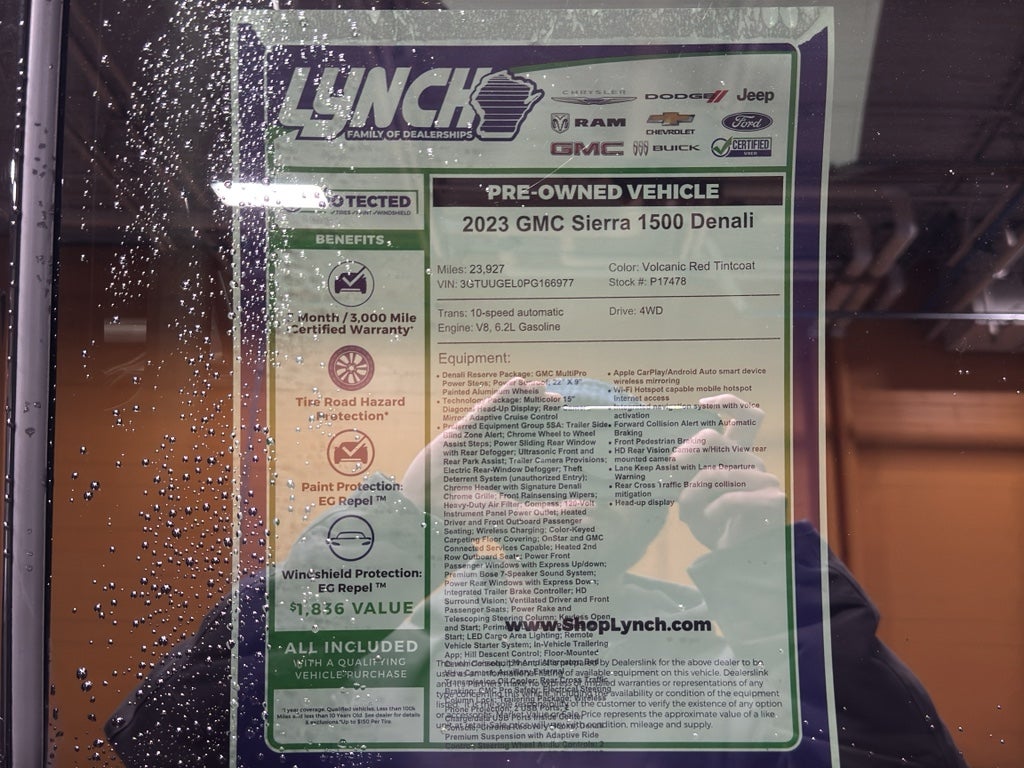 For sale: 2023 GMC Sierra 1500 Denali — pristine condition, low mileage at just 23,927 miles. This powerful luxury pickup features a robust 6.2L V8 gasoline engine with 4WD, delivering exceptional towing capability, confident handling, and refined on-road performance. Located in Burlington, WI, this Denali blends upscale comfort with rugged capability for drivers who demand the best.