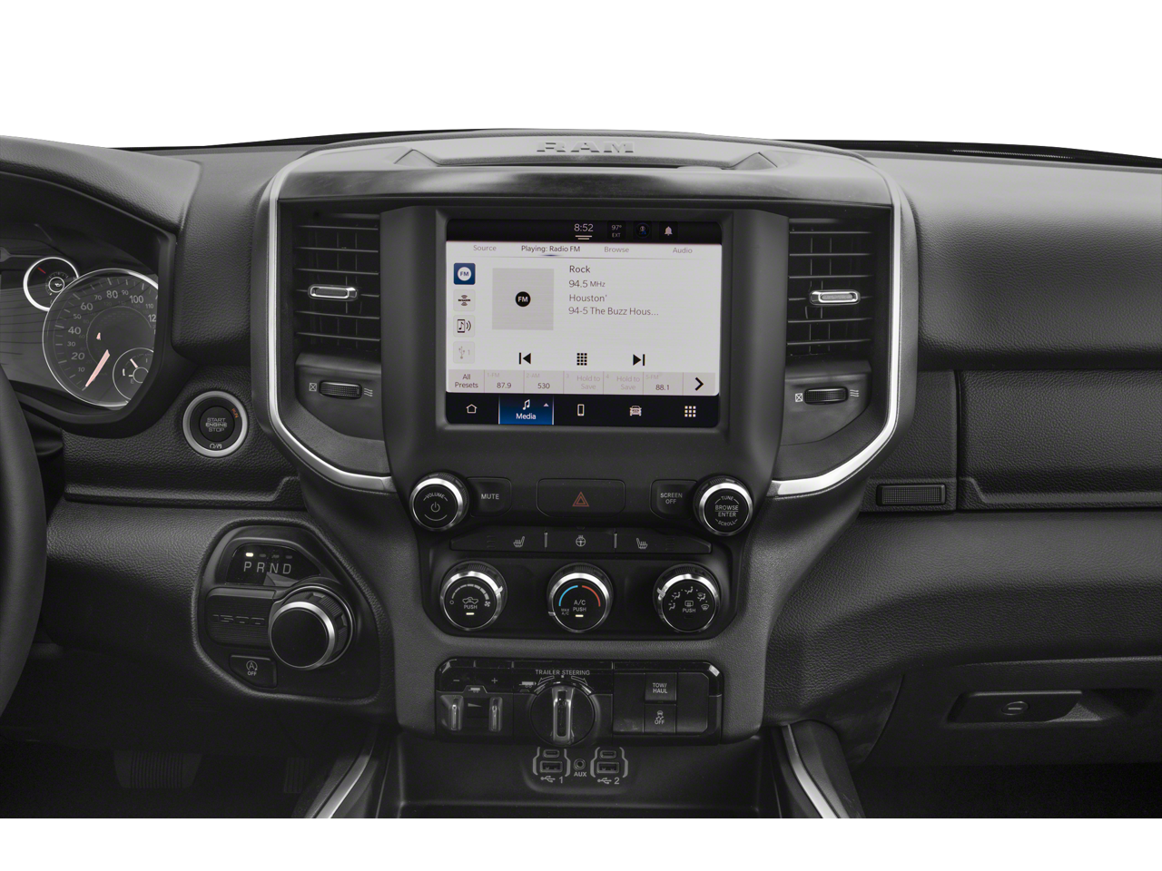 Quick Order Package 28Z Big Horn: Big Horn Badge. Big Horn Level 2 Equipment Group: Google Android Auto; Bluetooth® Handsfree Phone and Audio; USB Host Flip; Rear Window Defroster; Integrated Center Stack Radio; ParkSense Front/rear Park Assist with Stop; Rear View Auto Dim Mirror; For Details. Visit DriveUconnect.com; Power Adjustable Pedals; For More Info. Call 800-643-2112; Rear Power Sliding Window; Rear Dome with On/off Switch Lamp; Front Fog Lamps; Connectivity - US/Canada; Glove Box Lamp; 4G LTE Wi-Fi Hot Spot; GPS Antenna Input; Media Hub with 2 Charge Only USBs; Exterior Mirrors with Heating Element; Power 8-Way Driver Seat; Auto Dim Exterior Driver Mirror; Heated Front Seats; Heated Steering Wheel; Black Exterior Mirrors; Class IV Receiver Hitch; Security Alarm; Black Premium Power Mirrors; Apple CarPlay; Big Horn Instrument Panel Badge; Remote Start System; SiriusXM Satellite Radio; 400W Inverter; 9 Amplified Speakers with Subwoofer; Exterior Mirrors with Supplemental Signals; Exterior Mirrors Courtesy Lamps; Air Conditioning ATC with Dual Zone Control; 115V Auxiliary Power Outlet; Cluster 7.0" TFT Color Display; Universal Garage Door Opener; Electric Shift on Demand Transfer Case; Power-Folding Mirrors; 2nd Row in Floor Storage Bins; Convex Wide-Angle Exterior Mirror Insert; Sun Visors with Illuminated Vanity Mirrors; LED Footwell Lighting; Power 2-Way Driver Lumbar Adjust. Cold Weather Group: Engine Block Heater; MOPAR Winter Front Grille Cover. Sport Appearance Package: Deluxe Cloth Bucket Seats; Exterior Mirrors with Supplemental Signals; Body Color Premium Power Mirrors; Sport Decal; Body Color Door Handles; Exterior Mirrors Courtesy Lamps; RAM Grille Badge - Chrome; Exterior Mirrors with Heating Element; Auto Dim Exterior Driver Mirror; Grille Surround 1 Body Color Texture 1 Black; Body Color Exterior Mirrors; Black Interior Accents; Power-Folding Mirrors; Body Color Front Bumper; Convex Wide-Angle Exterior Mirror Insert; Body Color Rear Bumper with Step Pads. Premium Lighting Group: Front LED Fog Lamps; LED Reflector Headlamps; LED Taillamps. Quick Order Package 23Z Big Horn: Big Horn Badge. Uconnect 5 Navigation with 12.0" Display Radio. 20" X 9" Aluminum Chrome Clad Wheels. 9 Amplified Speakers with Subwoofer. Deluxe Cloth Bucket Seats. Blind Spot and Cross Path Detection. Anti-Spin Differential Rear Axle. ParkSense Front/rear Park Assist with Stop. 33 Gallon Fuel Tank. Trailer Brake Control. 115V Auxiliary Power Outlet. Remote Start System. Patriot Blue Pearlcoat. Patriot Blue Pearlcoat. Rear Wheelhouse Liners. 3.92 Rear Axle Ratio. MOPAR Front and Rear Rubber Floor Mats. Rear Underseat Compartment Storage. **Equipment listed is based on original vehicle build and subject to change. Please confirm the accuracy of the included equipment by calling the dealer prior to purchase.**