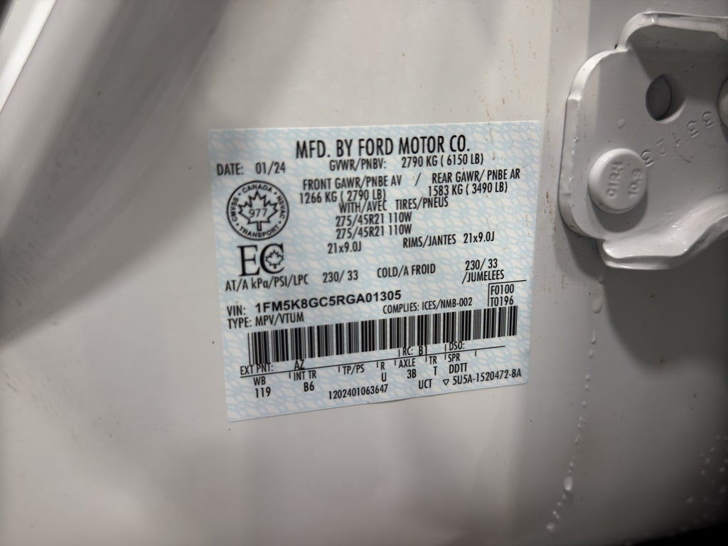 ST Appearance Package: Leather Trimmed Sport Captain's Chairs; Front and Rear Floor Mats. Technology Package: 2 Additional Speakers; 10.1" LCD Capacitive Portrait Touchscreen. Equipment Group 401A High Package: 3.58 Non-Limited Slip Rear Axle; Engine: 3.0L EcoBoost V6; 10-Speed Automatic Transmission; 21" Aluminum Wheels; 21" Tires; TBD GVWR; B&O Sound System by Bang and Olufsen. Twin Panel Moonroof. Star White Met Tri-Coat. Roof-Rail Crossbars. **Equipment listed is based on original vehicle build and subject to change. Please confirm the accuracy of the included equipment by calling the dealer prior to purchase.**