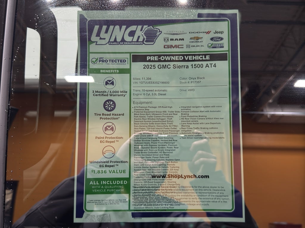 This 2025 GMC Sierra 1500 AT4 is priced to move — we're offering the best price in the area for a low-mileage, diesel-powered 4WD pickup with these features. Located in Burlington, WI, this truck is ready for inspection and test drives. Don't miss out on a rare combination of performance, capability, and value. Contact us today to schedule a viewing and take advantage of this unbeatable offer before it's gone.