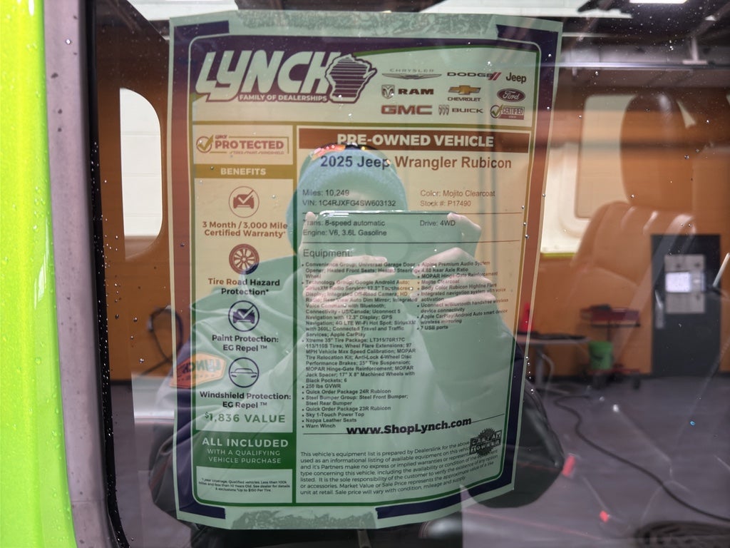 Located in Burlington, WI, this 2025 Jeep Wrangler Rubicon is competitively priced — the best deal you'll find for this model and condition in the area. Low mileage means years of reliable use ahead, and the powerful V6 ensures strong performance whether towing, hauling, or exploring. Don't miss the opportunity to own a well-equipped, low-mileage Rubicon with premium tech and essential safety features. Contact us in Burlington, WI to schedule a test drive and secure the best price on this exceptional 2025 Jeep Wrangler Rubicon.